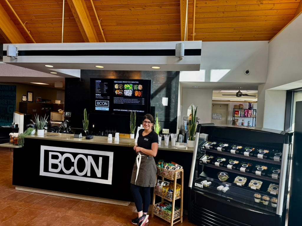 A curated selection of BCON meals available on site. Fully prepared, clearly labeled, and ready when you are—with heating available for any meals purchased at the café.